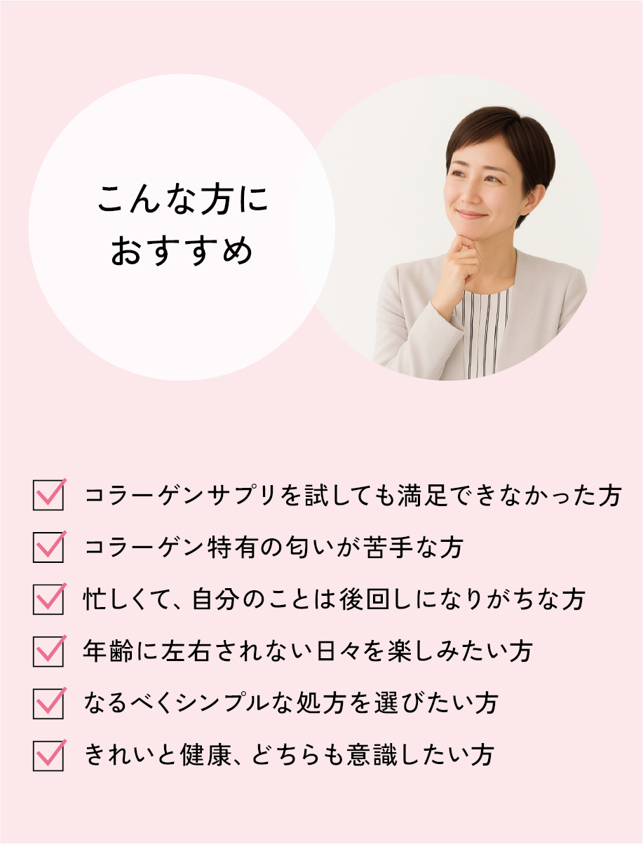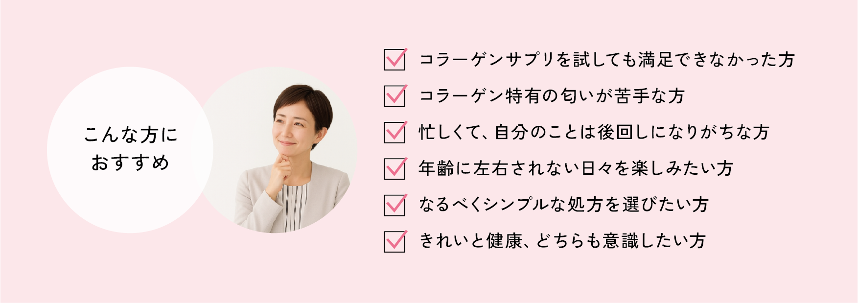 乾燥が気になる方、ハリのある毎日を目指したい方、自分のコンディションを整えたい方におすすめです。