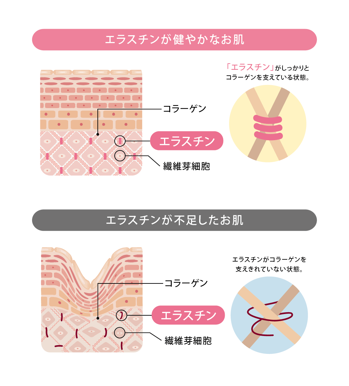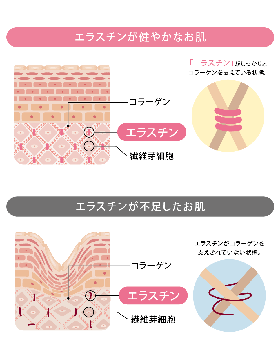 「土台」となるコラーゲンと「つなぐ」エラスチン。