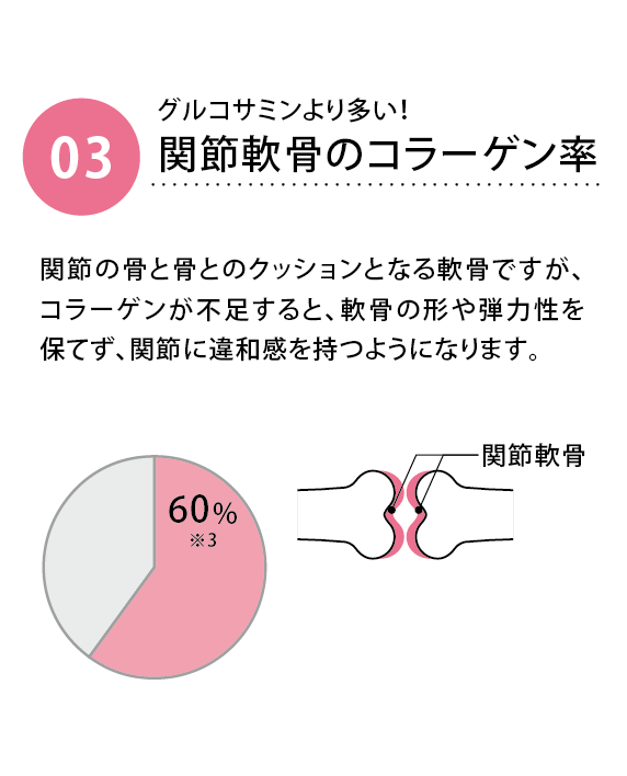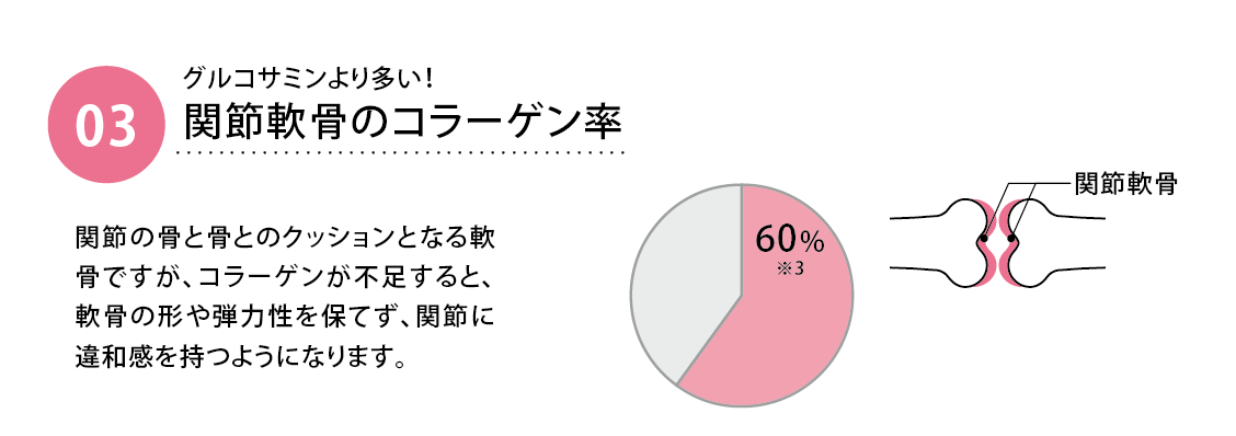 ※3 田中栄:グルコサミン研究、4,92(2008)乾燥重量比、構成成分の中央値を用いて水以外の成分を100%として算出